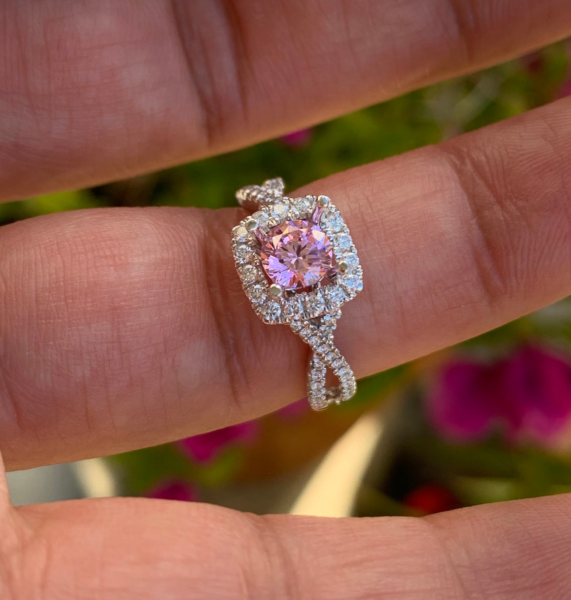 . Plenty of celebs have worn pink diamond engagement rings Natural Unheated Mahenge Tanzanian Pink Spinel 4.22 carats set in Platinum Ring with 0.38 carats Diamonds / GRS Report